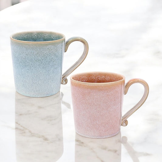 REACTIVE GLAZE PINK & BLUE SET OF 2 CERAMIC COFFEE MUGS CUPS