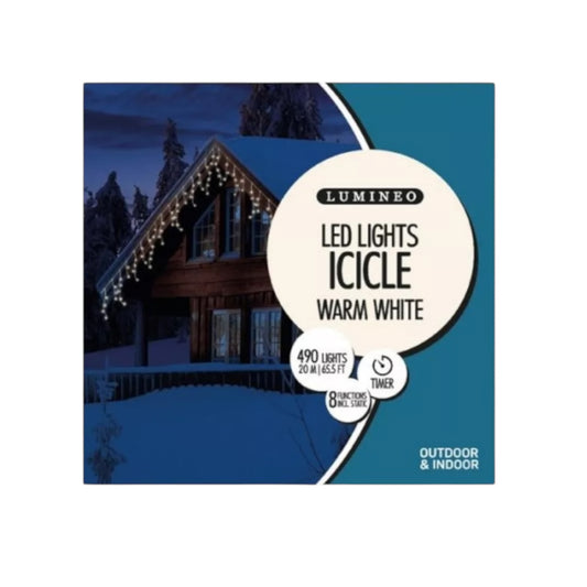 Christmas Icicle Lights 490LED Cool White Xmas Fairy Lights By Lumineo 20m