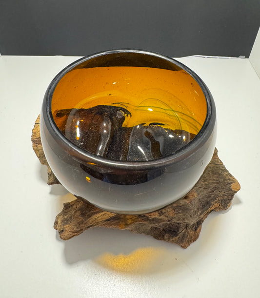 Molten Glass Mini Amber Bowl on Wood
