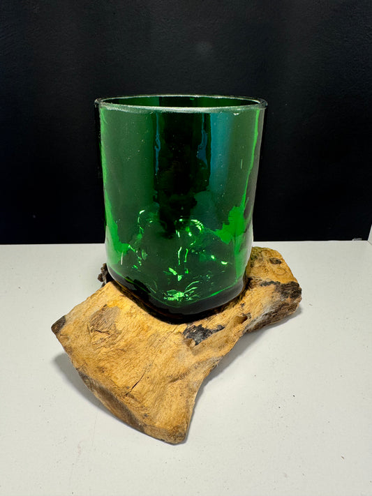 Molten Crackled Glass Tank on Wood