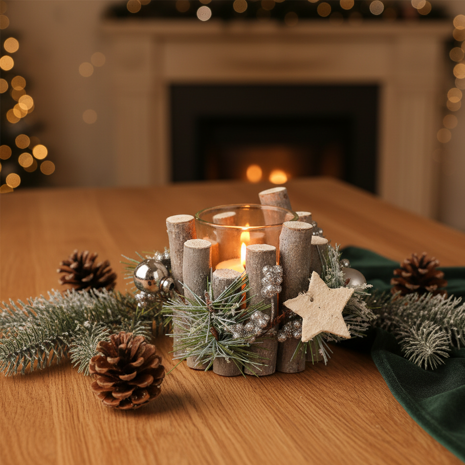 Perfectly sized to sit on any sideboard, mantelpiece, or dining table, this small candle holder adds a warm, inviting glow to your holiday décor.